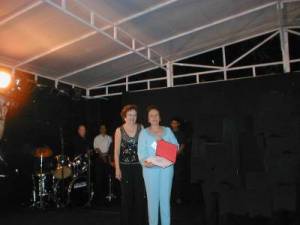 ![]() A Sra. Gláucia Galvão recebendo o Título de Sócia Benemérita da SAC |
