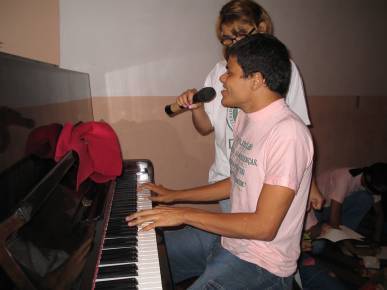 Nas aulas de música os alunos utilizam órgão, piano e também a fanfarra. |